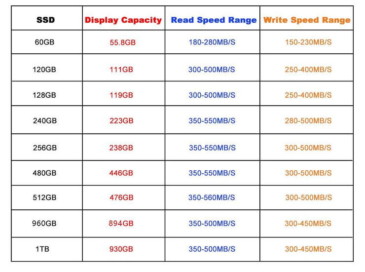 ※ Read Speed (MAX): 550 MB/s; Write Speed (MAX): 500 MB/s.